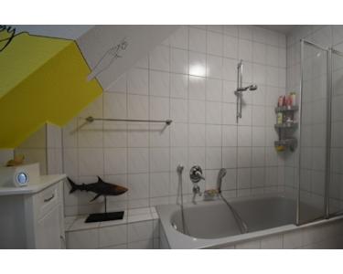 Bad mit Wanne, WC, Handwaschbecken, (Waschmaschinenanschluss separat im Keller)