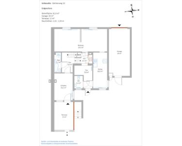 Das 1½-geschossige Gebäude ist im Erdgeschoss teilweise im Split-Level angelegt und verfügt über 4 Zimmer, ein Wannenbad, ein Gäste-WC sowie eine großzügige Küche, die direkt vom lichtreichen Wohnbereich aus zugänglich ist.