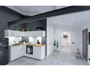 Loftapartment im historischen Fabrikambiente eines alten Fotolabors trifft auf Moderne Es handelt sich hier um eine wunderschöne und exklusive Neubauwohnung im Herzen von Düsseldorf Oberrath. Die Wohnung wurde im Oktober 2021 fertiggestellt und liegt super zentral auf Höhe Rather Waldstadion und Derendorf. Die sehr schöne Stadtwohnung in Düsseldorf Oberrath hat einen eigenen Eingang und ist mit luxuriösen Möbeln ausgestattet u.a. mit einer modernen Einbauküche, frischen Glattputzwänden, top modernem Bad, TV-Bereich sowie einem geräumigen Schlafzimmer. Sie genießen alle Vorteile der zentralen Lage und können sich trotzdem an einer ruhigen Wohnung erfreuen, da sie zum Innenhof gerichtet ist. Der Bahnhof ist 2 Gehminuten entfernt. Discounter und Supermärkte wie Penny und Lidl sind direkt neben der Wohnung zu Fuß erreichbar. Historische Sehenswürdigkeiten wie die Frauensteine oder das Kriegsdenkmal sind in wenigen Gehminuten zu Fuß erreichbar.