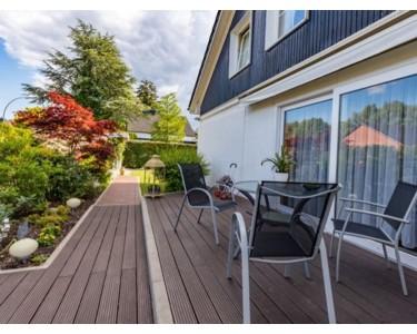 Der liebevoll gestaltete Garten mit zwei elektrischen Markisen und einer großen Bankirai-Terrasse (ca. 70 m²) bietet perfekte Voraussetzungen zum Entspannen und Genießen.