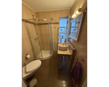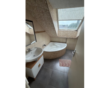 Das Obergeschoss bietet ein großes Vollbad mit eleganter Acrylwanne und separater Dusche, das durch seine Helligkeit und hochwertige Ausstattung überzeugt.