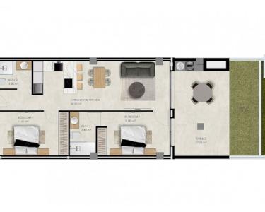 Diese zeitgemäßen Immobilien verfügen über zwei Schlafzimmer, zwei Badezimmer, eine moderne Küche und einen offenen Wohn-/Essbereich. Die Apartments im Erdgeschoss verfügen über einen privaten Garten, die Immobilien im ersten Stock über eine große Terrasse und die Penthouse-Apartments über ein privates Solarium. Alle Einheiten wurden mit modernen Linien, funktionalen Grundrissen und viel natürlichem Licht gestaltet.