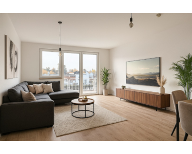 Entlang der Küche, findet sich das Highlight der Wohnung - ein geräumiges Wohnzimmer, dass viel Platz für eine schöne Wohnlandschaft bietet und den Zugang zum großen gepflasterten Balkon in West-Lage gewährt. Hier lässt es sich wunderbar vom Alltagsstress erholen.