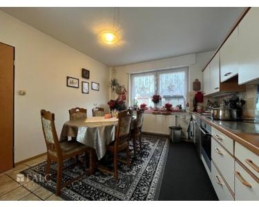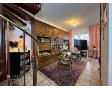 Die Wohnung verteilt sich auf zwei Etagen und bietet vier Zimmer, Küche, Bad, Gäste-WC, ein Garten mit Terrasse, eine Garage, 3 Kellerräume sowie einen Abstellraum.