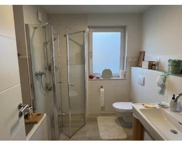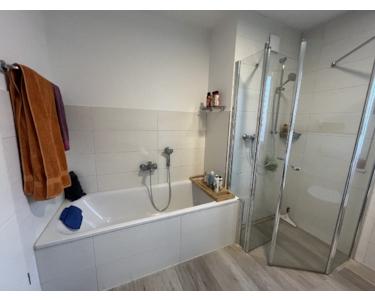 - Tageslicht-Badezimmer mit Dusche und Wanne