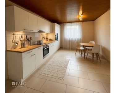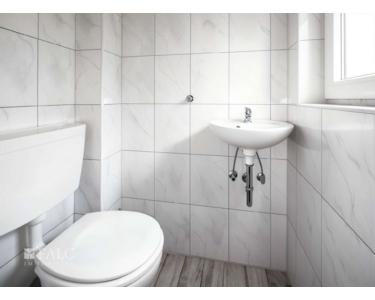 Das Wohnzimmer ist hell und funktional geschnitten, ideal für einen gemütlichen Ess- und Wohnbereich. Die Küche und das Badezimmer wurden 2018 modernisiert und sind mit zeitlosen Fliesen ausgestattet. Teilweise erneuerte Bodenbeläge sorgen für ein gepflegtes Wohngefühl.