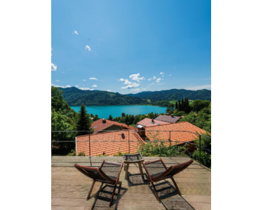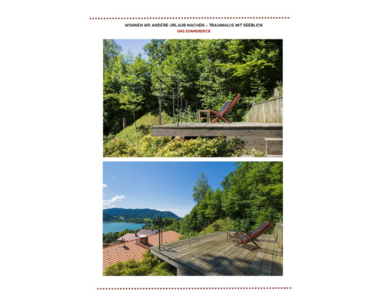 Der überdachte Südwestbalkon erstreckt sich über die gesamte Wohnfront und bietet zum Teil großzügige Tiefen. Im Erdgeschoss des Neubaus befindet sich eine Wohnung mit separatem Zugang. Das Grundstück verfügt über zahlreiche Terrassen und einen wunderschönen Garten mit Natursteinambiente. Der Traumplatz, der derzeit als Yoga- und Sunset-Deck genutzt wird, befindet sich im obersten Grundstücksteil. Von hier aus genießt man einen spektakulären Blick und traumhafte Sonnenuntergänge über dem See.