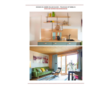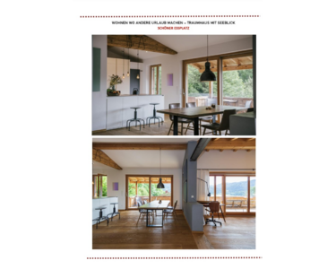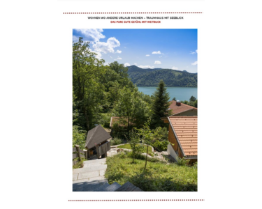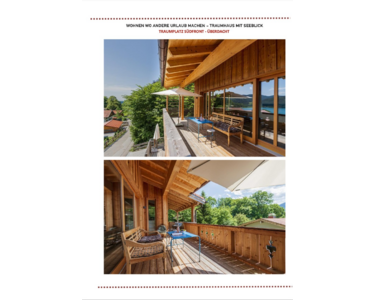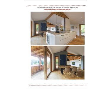 Das ursprüngliche Haus aus den 1980er Jahren wurde 2017 vollständig kernsaniert und neugestaltet. Ein Anbau in Vollholzbauweise und integrierter Doppelgarage wurde 2017 neu errichtet. Das Bestandshaus bietet drei Schlafzimmer, zwei Bäder und einen ca. 70 m² großen, offenen Wohn- und Essbereich mit Sichtdachstuhl und wunderschönen Seeblick.