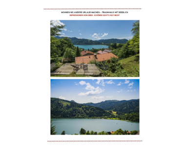Das angebotene Objekt befindet sich in einer erstklassigen Lage direkt in Schliersee. Dieses stilvolle Haus beeindruckt durch seine modernen Akzente, die sich harmonisch in die gewachsene Umgebung einfügen. Die ruhige Lage, eingebettet in unberührte Natur und mit großzügigen Abständen zu den Nachbargrundstücken am Ende einer Sackgasse, wird Sie begeistern. Eine hervorragende Bausubstanz, die zeitlose Innenausstattung und der Seeblick sind nur einige der Highlights dieses Anwesens.