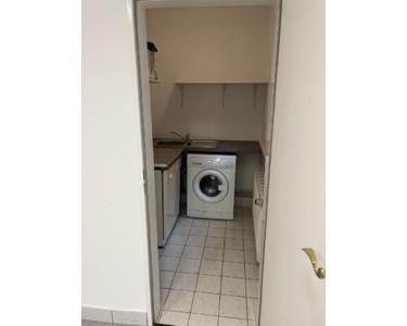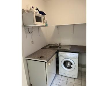 In der Küche befinden sich: Waschmaschine, Mikrowelle, Geschirrspülmaschine.