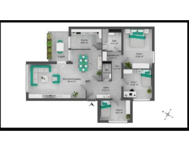 Linksseitig befindet sich neben dem Wohn-Essbereich (ca.: 37m²), die Küche (ca.: 9m²), sowie der Balkon, der besonders zur warmen Jahreszeit zum Verweilen einlädt.