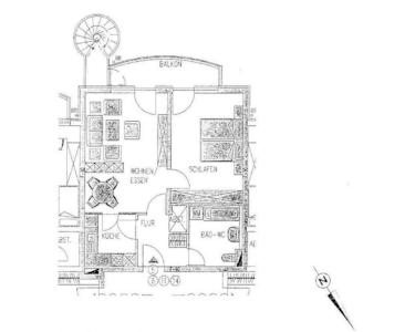 Die Wohnung verfügt über ein großes Wohnzimmer mit Zugang zur Küche und zum Schlafzimmer, ein Bad mit Badewanne und Waschmaschinenanschluss, ein helles Schlafzimmer und eine offene Abstellkammer im Flur. Der große Balkon ist sowohl vom Schlafzimmer als auch vom Wohnzimmer erreichbar und bietet Ihnen einen schönen Blick in den Innenhof. Die gut ausgestattete Küche verfügt über zwei separate Eingänge.