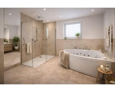 - Modernes Bad mit bodengleicher Dusche & Whirlpool-Badewanne