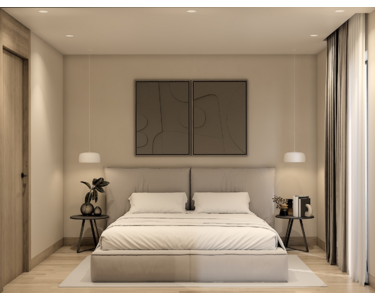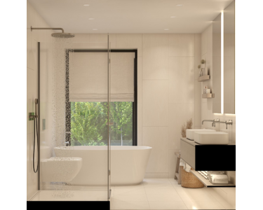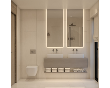 •Stilvolle Innenausstattung, Indirekte Beleuchtung, Epoxidharz-Hochglanzböden (auf Wunsch individualisierbar), großformatige Fliesen, gespachtelte Wände und deckenhohe Türen