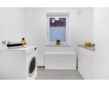 Jede Wohnung verfügt über einen eigenen Hauswirtschaftsraum inkl. Waschmaschinen- und Trockneranschluss, was den Alltag erheblich erleichtert.