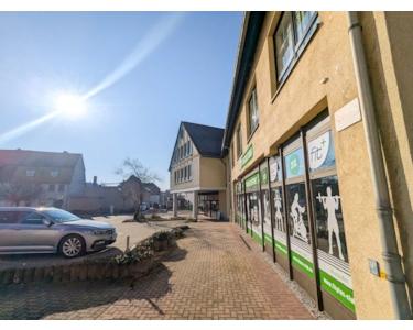 - einem Geschäftshaus mit 11 Gewerbeeinheiten auf 1.200 m² Fläche, Baujahr 1993, welches Ärzte, Apotheke, zahntechnisches Labor, Gastronomie, Fitnessstudio, Gesundheit/Pflege und Büros beherbergt mit großem angrenzendem Mietparkplatz
