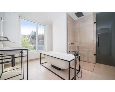 Das herrliche Tageslicht-Badezimmer lässt keine Wünsche mehr offen. Begrüßt werden Sie hier nicht nur von einer freistehenden Badewanne, sondern auch von einer ebenerdigen, breiten Dusche mit Glaswand. Ein großzügiger Waschtisch in direkter Tageslichteinstrahlung darf natürlich nicht fehlen. Freuen Sie sich auf erholsame Wellness-Abende zu Hause.
