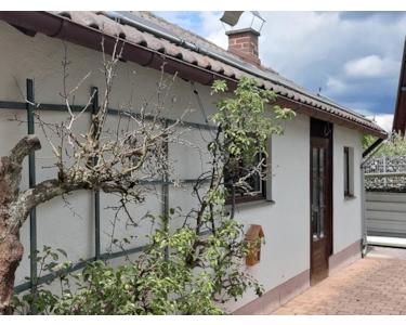 Eine Garage mit extra Fahrradschuppen und zusätzlichem Abstellraum.