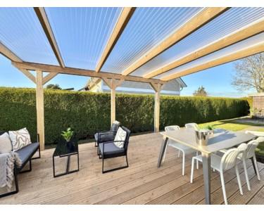 • Überdachte Terrasse mit neu angelegtem Außenbereich
