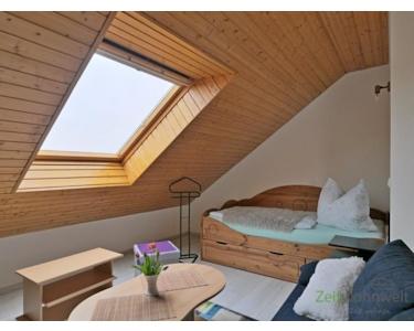 (EF1025_M) Dresden: Ockerwitz, preiswerte möblierte Dachwohnung mit Balkon und Grundreinigung, WLAN