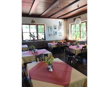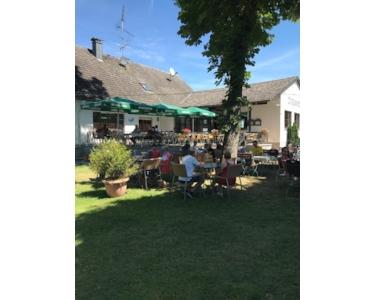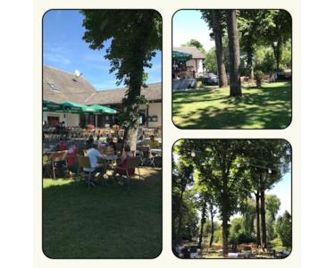 Außenbereich: Terrasse (40 Plätze) und weitläufiger Biergarten (ca. 100 Plätze).