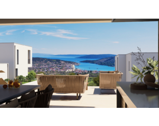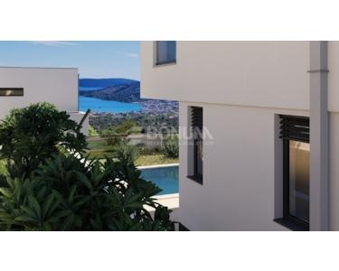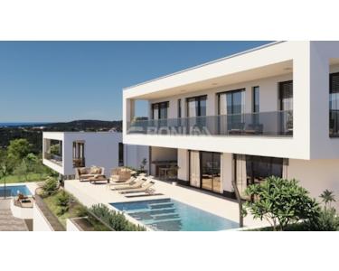 U der ruhigen und attraktiven Umgebung von Vinišće, unweit von Trogir, befindet sich eine moderne Villa, die für unbeschwerte Erholung und maximalen Genuss des mediterranen Lebensstils konzipiert wurde. Dank der erhöhten Lage bietet die Immobilie einen schönen Meerblick, während die zeitgemäße Architektur mit großen Glasfronten das Gefühl von Weite und Licht zusätzlich betont.