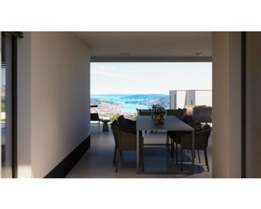 Der Meerblick begleitet das Wohngefühl durch die wichtigsten Innenräume und Außenflächen und vermittelt echtes „Holiday-Home“-Flair.