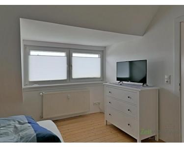### Please note the availability date! Bitte das Verfügbarkeitsdatum beachten! ### schicke 2-Zimmer, Dachwohnung im 2. Obergeschoss, Grundfläche ca. 60 Quadratmeter; Parkettböden; WLAN inkl; Waschmaschine im Keller; helles Wohnzimmer mit Küchen-Nische, Esstisch-Tresen, Eckcouch, Schrankwand, TV und Ausgang zum Dachbalkon; Schlafzimmer auf der Gebäuderückseite mit Doppelbett, Keiderschrank, Sideboard und TV; Bad mit Dusche, Wanne und WC; Wohnungsflur mit kleiner Garderobe; Pauschalmiete 980,00 Euro (bei 1 Person); Kaution 1.200,00 Euro; Mindestmietdauer 3 Monate; Endreinigung Mietersache; Pflichtangaben zum Energieausweis: Energieausweis gültig bis: 11.06.2034; Baujahr Gebäude: 1938; Energieausweis: nach Bedarf; Energieverbrauch: 284.14 kWh/(m²a); Energieeffizienzklasse: H; Primärer Energieträger: Erdgas
