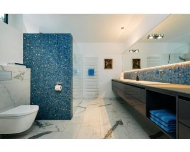 • Optional mit hochwertiger Möblierung (u.a. USM Haller), Naturstein, Bisazza-Mosaik.