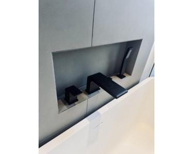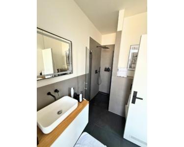 Neues, modernes Badezimmer mit Markenarmaturen (Grohe), mattes Design