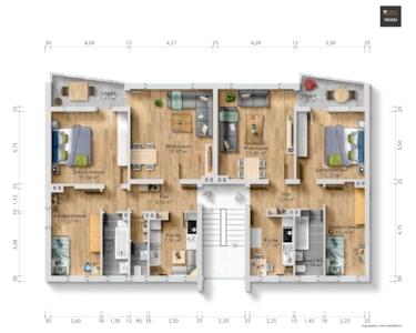 - Die äusseren Wohnungen verfügen jeweils über ein Gäste-WC