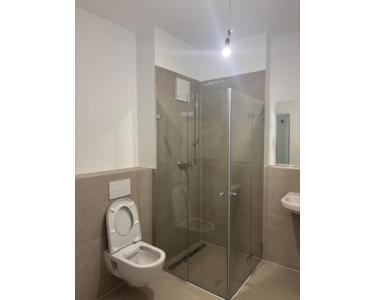 - Stilvolles Badezimmer mit moderner Sanitärausstattung und Duschabtrennungen