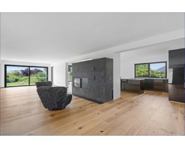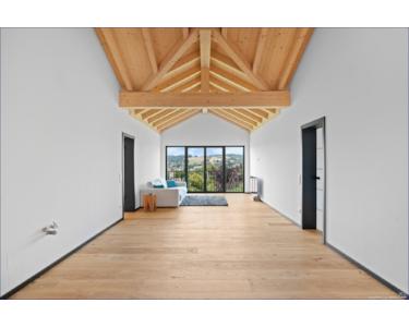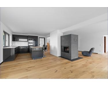 Die Böden im Erd- und Dachgeschoss sind mit hochwertigen Holzböden in Eiche verlegt worden. Der Hersteller ist die österreichische Firma Kaindl.