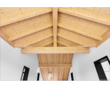 Der offene Sichtdachstuhl verleiht den Raum in einem gemütlichen Charakter, in dem die Dachbalken sichbar bleiben.