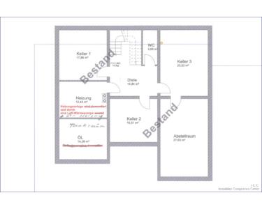 Das Untergeschoss hat insgesamt eine Nutzfläche von 129,55 m², davon sind Heizung und Öltanks (7.500 Liter) 26,71 m².