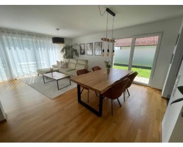 Das helle Reiheneckhaus wurde 2019 in hochwertiger Massivbauweise errichtet und befindet sich in einem neuwertigen, sehr gepflegten Zustand. Die Süd-West-Ausrichtung sorgt für lichtdurchflutete Räume und Sonne bis in die Abendstunden. Der moderne, familienfreundliche Grundriss bietet großzügige Wohnflächen sowie ausreichend Rückzugsmöglichkeiten. Große Fenster mit elektrischen Rollläden und Jalousien gewährleisten hohen Wohnkomfort und ein angenehmes Raumklima.