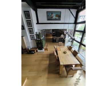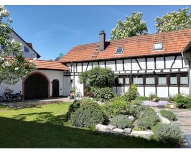 Das sich ebenfalls auf dem Grundstück vorhandene Fachwerkhaus ist denkmalgeschützt (Kulturdenkmal) und wurde 2022 außen saniert. Innen könnte es zu weiterem Wohnraum ca. 180 qm ausgebaut werden. Es kann aktuell gut als Werkstatt oder Lager genutzt werden. Das Gebäude hat einen separaten Eingang zum Innenhof bzw. einen Straßen Zugang.