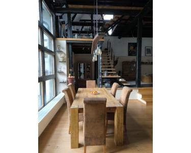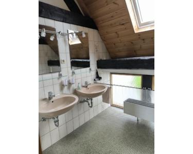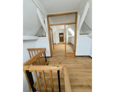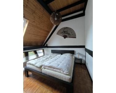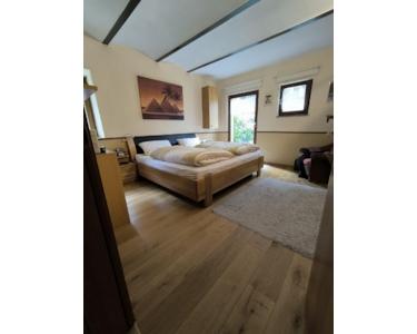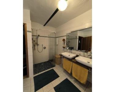 Über eine weitere Wendeltreppe gelangt man in das Obergeschoss. Mit 2 großen freundlichen Zimmern, jedoch flexibel aufteilbar als 4 Zimmer mit separatem Eingang und einem Dusch-Bad vervollständigt dieser Bereich das Haupthaus.