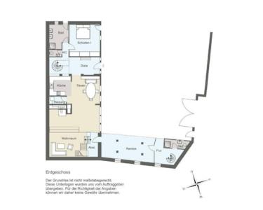 Schon beim Eintreten in den Hof lässt sich bereits eindrucksvoll das Besondere dieser Immobilie erkennen. Ein gepflegter Innenhof, liebevoll angelegt, mit Terrasse und schönen Grünflächen eröffnen einen idyllischen Platz zum Verweilen.