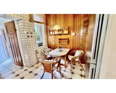 Die beiden Wohnzimmer sind miteinander verbunden. Der zur Straße gelegene Wohnraum verfügt über große Erkerfenster, welche viel Licht hereinlassen. Das Zimmer ist mit einer Leder-Sitzgruppe und Bücherregalen ausgestattet. Ein Ofen vervollständigt die gemütliche Atmosphäre. Außerdem gibt es ein Flat-TV (Kabelanschluss). Das zweite Wohnzimmer verfügt über einen Esstisch für ca. sechs Personen. Von diesem Zimmer führt eine Tür in den schönen Wintergarten. Ein Bistrotisch bietet Platz für einen Snack. Vor dem Wintergarten befindet sich eine kleinere Terrasse. Bei geöffneten Türen des Wintergartens entsteht eine große Terrasse mit Blick auf den Vorgarten.