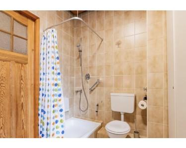 Die Schlafzimmer sind mit einem Doppelbett (200x160cm), bzw. einem ausklappbaren Einzelbett (ausgeklappt 200x160cm) eingerichtet. Bettdecken, Kopfkissen, Bettwäsche und Handtücher werden gestellt. Das großzügige Badezimmer hat ein Fenster, eine Dusche, ein Waschbecken und das WC. Hier befinden sich auch die Waschmaschine und der Trockner.