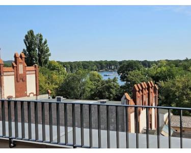 Das 2,5-Zimmer-Penthouse gehört zum Helling Hof und liegt im Wohnquartier 52° Nord. Es bietet eine faszinierende Sicht auf die Wasserlandschaft der Dahme. Die bodentiefen Fenster lassen viel natürliches Licht herein. Die großzügige von der Sonne verwöhnte Dachterrasse mit 50 m² bietet viel Platz für entspannende Stunden im Freien, Feiern mit Familie und Freunden oder das schönste Homeoffice der Stadt. Neben dem geräumigen Wohn- und Essbereich hat das Schlafzimmer über ein zusätzliches halbes Zimmer Platz für eine Umkleide oder einen Arbeitsbereich. Dieser Bereich könnte vom Schlafzimmer räumlich getrennt werden, sodass ein separates drittes Zimmer geschaffen wird. Der Eingangsbereich sieht eine große Garderobe vor. Zusammen mit einem Hauswirtschaftsraum und dem Keller ist damit ausreichend Stauraum vorhanden.