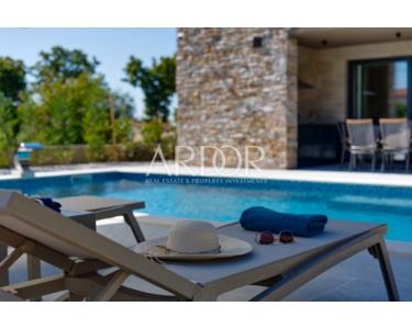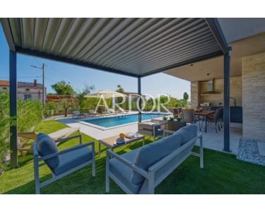 Eine exklusive Villa in Istrien steht zum Verkauf – ein neues und modern gestaltetes Anwesen, das hochwertige Bauqualität, Ästhetik und umfassenden Komfort vereint. Die Villa verfügt über 200 m² Wohnfläche, steht auf einem 600 m² großen Grundstück und wurde mit besonderem Augenmerk auf Qualität und Langlebigkeit gebaut. Modernste Standards wie Dreifachverglasung und Fußbodenheizung sorgen für außergewöhnliche Energieeffizienz und ein angenehmes Wohnen zu jeder Jahreszeit.
