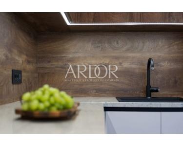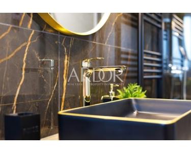 Das Innere des Hauses strahlt modernen Luxus und heimelige Wärme aus. Der zentrale Bereich besteht aus einem geräumigen Wohnzimmer, das mit einer elegant eingerichteten Küche und einem Esszimmer verbunden ist – ein idealer Ort zum geselligen Beisammensein oder Entspannen. Die Villa verfügt über vier komfortable Schlafzimmer, jedes mit eigenem, hochwertig ausgestattetem Badezimmer, das allen Haushaltsmitgliedern und Gästen absolute Privatsphäre und Komfort bietet. Designdetails und sorgfältig ausgewählte Materialien vermitteln einen Eindruck von Raffinesse und zeitlosem Stil.