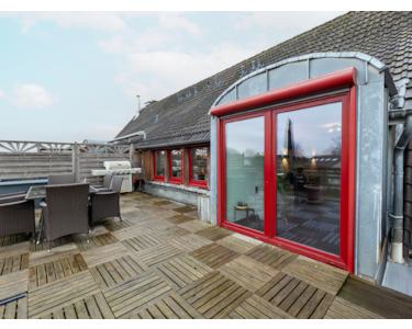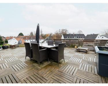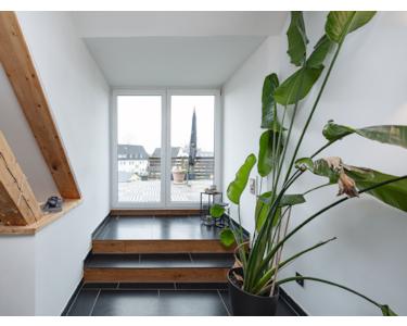 Die beeindruckende Dachterrasse mit Süd-/West-Ausrichtung präsentiert sich als außergewöhnlicher Außenbereich mit Lounge-Charakter und hebt den Wohnkomfort auf ein neues Niveau.