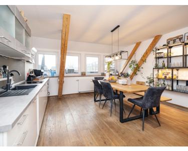 Diese außergewöhnliche Eigentumswohnung mit ca. 90 m² Wohnfläche vereint stilvolle Architektur, hochwertige Materialien und ein exklusives Wohngefühl. Ein absolutes Highlight ist die ca. 70 m² große Dachterrasse, die ein einzigartiges Gefühl von Freiheit und Großzügigkeit vermittelt – ideal für entspannte Sonnenstunden, stilvolle Abende oder den privaten Rückzugsort über den Dächern der Stadt.