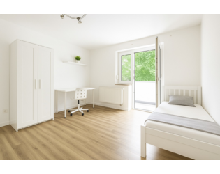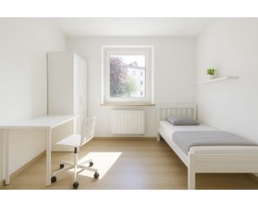 Alle Zimmer (Einzelzimmer auch zu vermieten) sind lichtdurchflutet und bereits bezugsfertig mit Bett, Kleiderschrank, Schreibtisch und Stuhl ausgestattet: