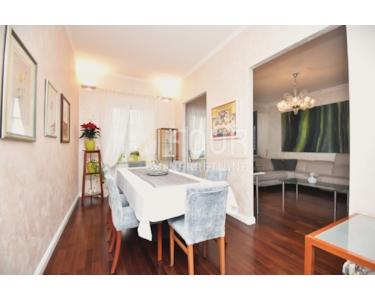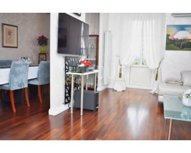 Die hohen Decken machen den Raum hell und luftig, die Böden in den Zimmern sind aus Parkett, während andere Teile der Wohnung mit Keramik verkleidet sind. Die Küche ist mit hochwertigen Geräten ausgestattet. Drei Zimmer bieten genug Platz zum Schlafen, Arbeiten oder Verstauen, während das geräumige Badezimmer, ein separates WC und ein Waschraum die Funktionalität der Wohnung weiter verbessern.