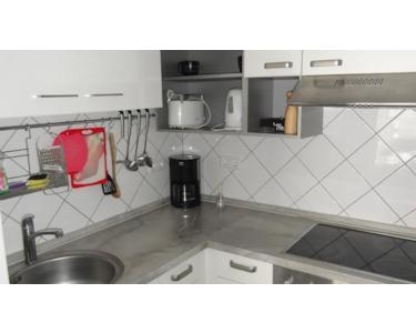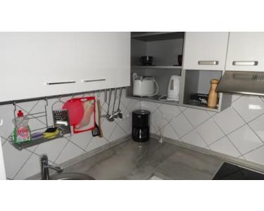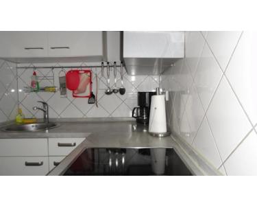 Separate, kompakte Einbauküche, vollständig ausgestattet (inkl. Utensilien, Kühlschrank und Waschmaschine)