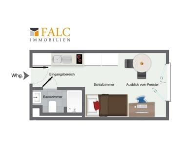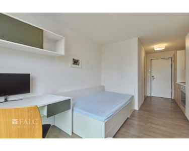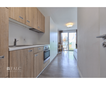 Die Ausstattung dieses Microapartments ist perfekt auf den Mieterkomfort und die unkomplizierte Vermietung ausgerichtet. Der Wohnbereich ist mit hellem Laminatboden versehen und durch die großzügige Fensterfront den ganzen Tag über optimal mit Tageslicht durchflutet – eine Atmosphäre, die Mieter lieben und die die Wohnung besonders attraktiv macht.